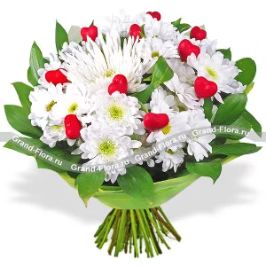Свидание в Рио + шоколад - букет из хризантем,гербер и роз с шоколадом