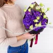 Стандартный: эустома фиолетовая - 11 шт., упаковка, лента. Примерный размер: 20Х20 см.
