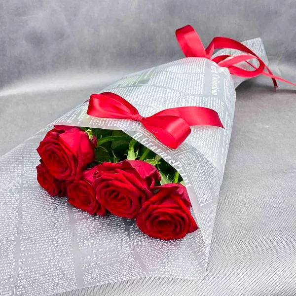 Роза красная 60 см (количество, выбранное Вами), упаковка - может отличаться от представленной на фото.